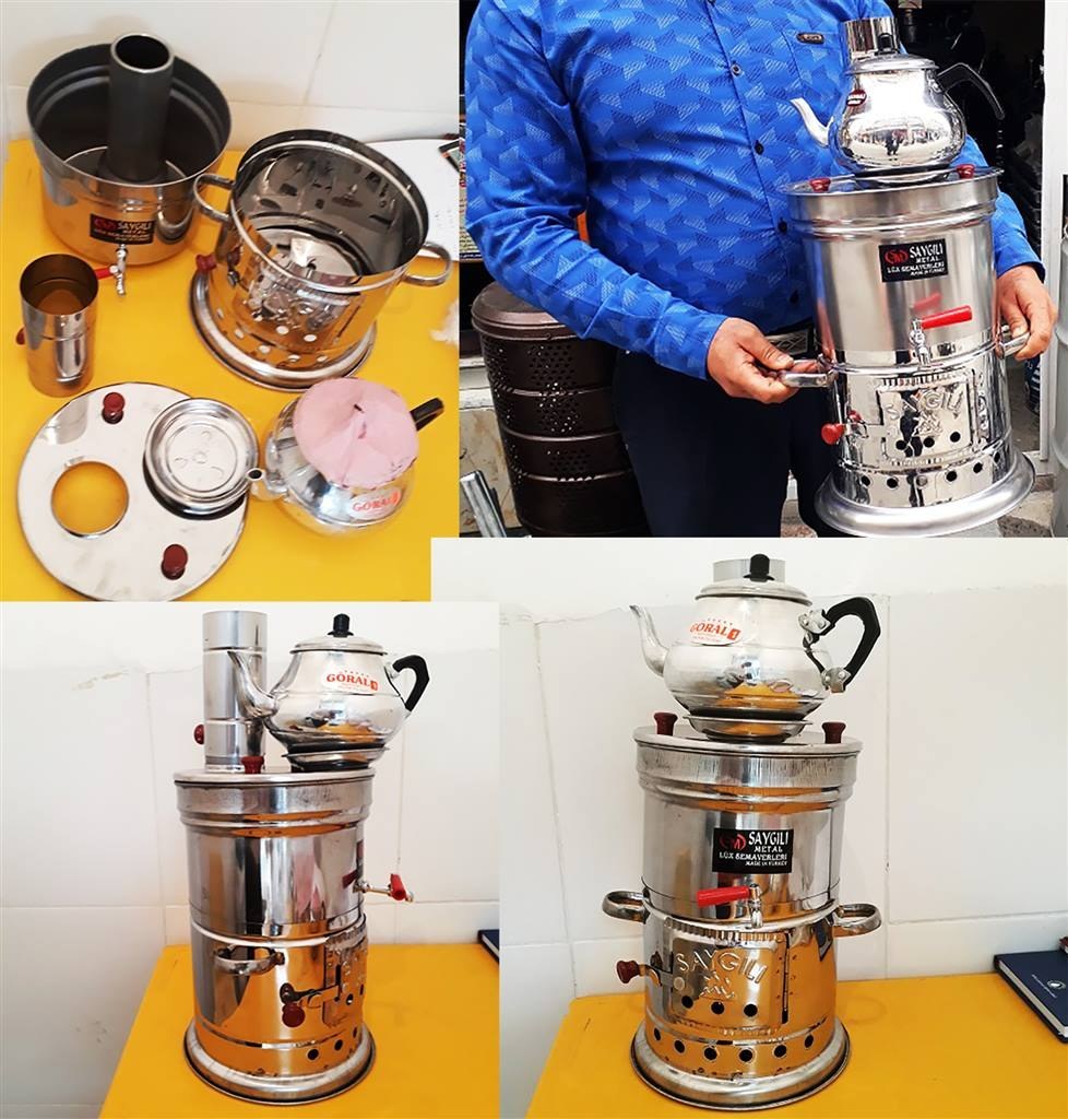 سماور زغالی استیل ترکیه بهمراه قوری