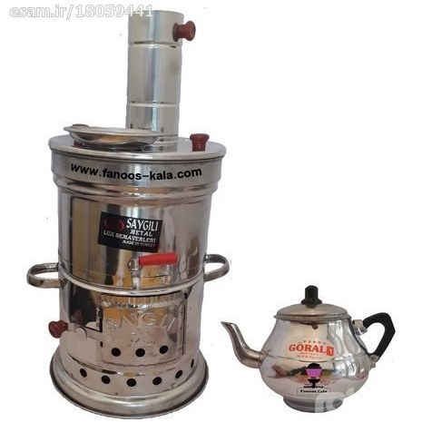 سماور زغالی استیل ترکیه بهمراه قوری